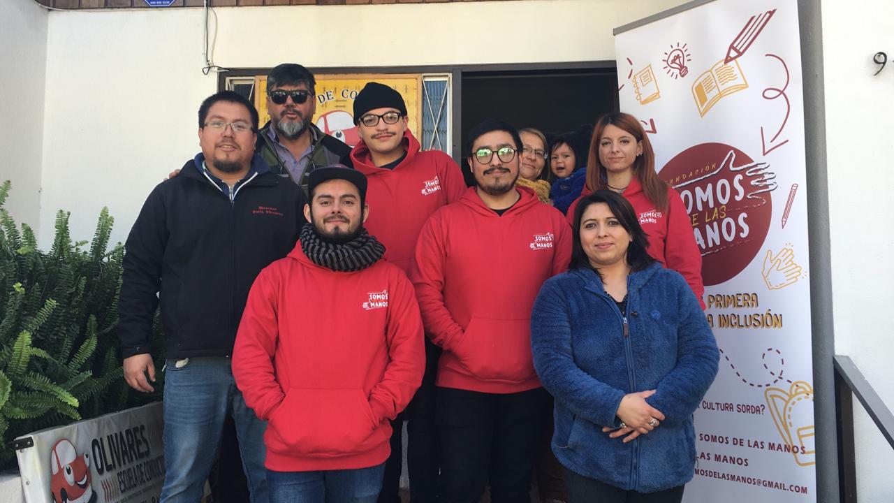La Fundación Somos de las Manos es una institución sin fines de lucro que promueve la cultura sorda y lengua de señas chilena, su historia, cultura y recursos a fin de derribar las barreras comunicacionales y aportar a tener una sociedad más inclusiva. Difundir la Lengua de Señas Chilena en igualdad de oportunidad. Trabajar por mejorar la accesibilidad de las personas sordas en todos los ámbitos promoviendo el desarrollo de proyectos que mejoren la calidad de vida de las personas sordas y de sus familias. Disponer de un servicio de interpretación en beneficio a la Comunidad Sorda, con el fin de generar herramientas comunicativas que permita un acercamiento entre la comunidad oyente y la comunidad sorda.